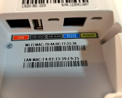 Pax A920 Bluetooth charging Base with Ethernet, Bluetooth and USB.