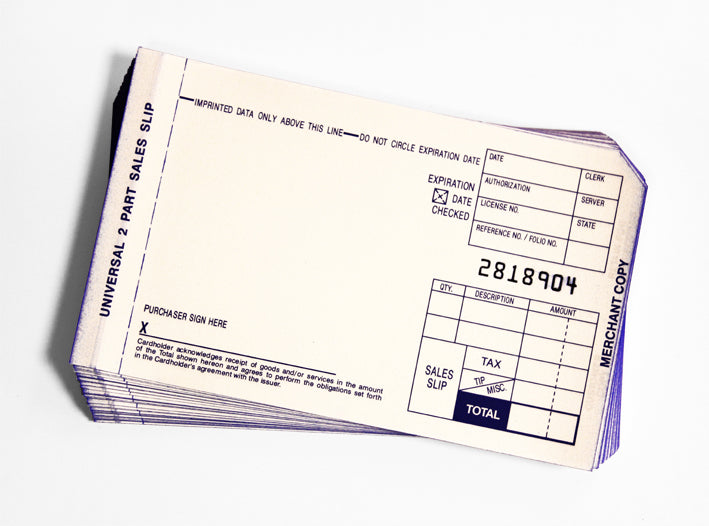 Universal 2-Part Sales Vouchers (Pack of 50). Manual credit card backup slips.